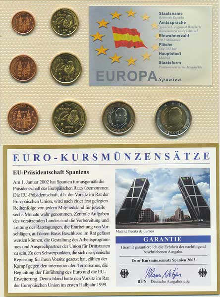 | 3947. | Ročníková sada EURO mincí 2003 (1, 2, 5, 10, 20, 50 Cents, 1, 2 E