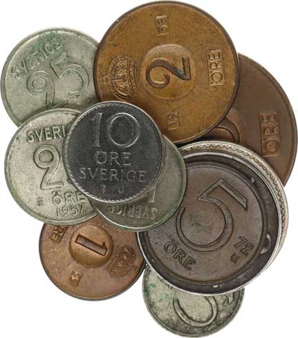 | 3978. | 1 Öre 1959, + 2 Öre 1949, 1956; +5 Öre 1959, 1972; +10 Öre 1945 G