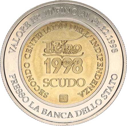 | 3986. | 10 Franken (Scudo) 1998 - 10. výr. nezávislosti
