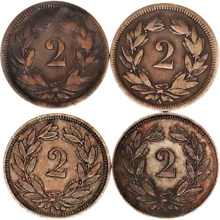2 Rappen 1883, 1941, 1954 vše B 11 ks |