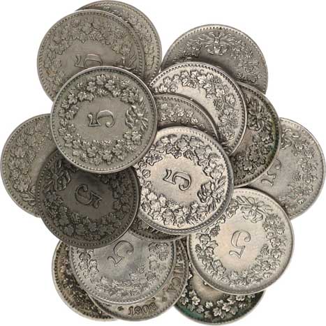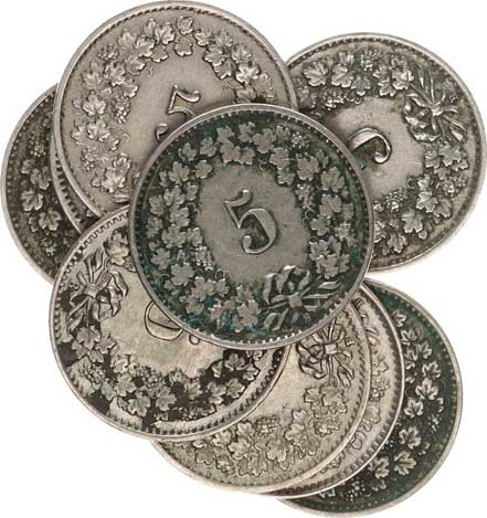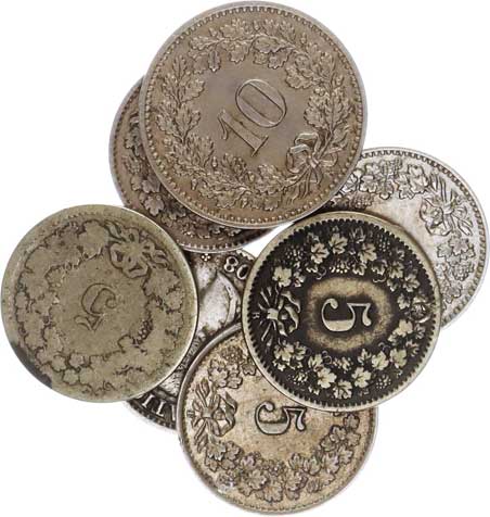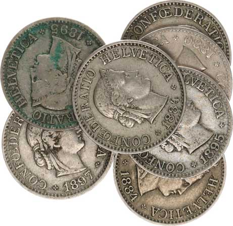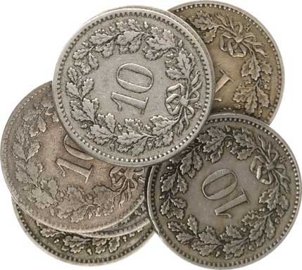 | 4000. | 10 Rappen 1880, 1884(2x), 1885, 1895(2x), 1897 vše B 7 ks | 1-2 | 60,- | 100,- |