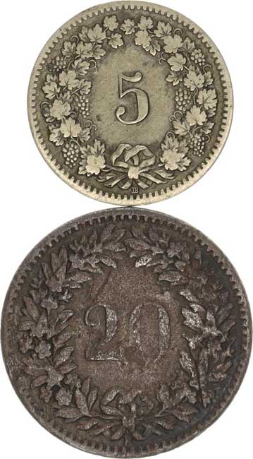 | 3994. | 5 Rappen 1850 BB, +20 rappen 1859 B "R" 2 ks | 1-2 | 50,- | --.- |