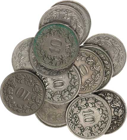 | 3999. | 10 Rappen 1880, 1881(2x), 1897, 1901, 1907, 1922, 192, 1929, 1944