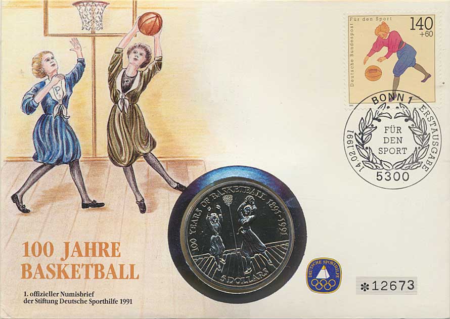 | 4120. | 5 Dollars 1991 - 100. výr. basketbalu KM 144 adjustace j