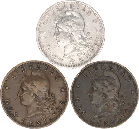 2 Centavos 1884, 1891 KM 33 3 ks |