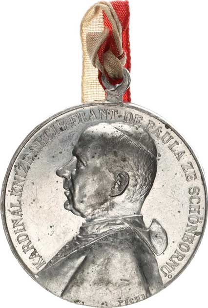 v. Václav, sv. Vojtěch a sv. Jan Nepomucký / Kardinál Frant. Schö nborn, poprsí zleva sign.: PICHL Sn 35 mm pův. ouško +st užka |