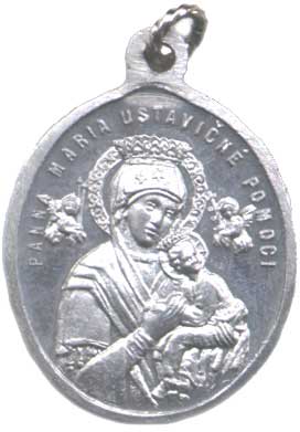 la, opis / Stylizovaný obraz Panny Marie Ustavičné pomoci, opis patinovaný bronz 29 mm orig. ouško Přibil neuvádí |