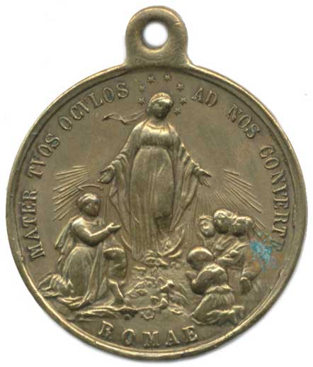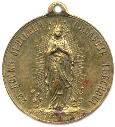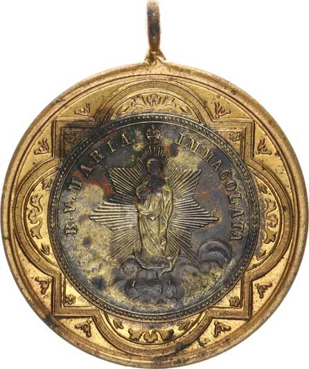 e zleva, opis / P. Maria Immaculata, opis mosaz zlacená, střed patinovaný 39 mm kolmé ouško |