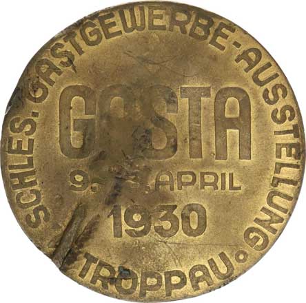 , opis OLMÜTZ 13. AUGUST 1871 / Lyra a nápis o 4 řádcích Sn 31 mm pův. závěs Taul 458 |