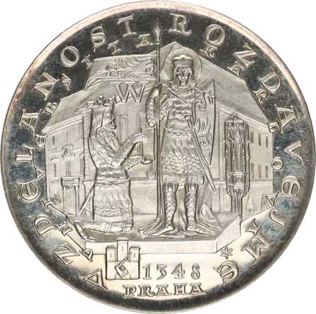 is / Karel IV. zakládá universitu, opis (K 600. výr. úmrtí vyd. Lyra Pragensis 1978) na hraně punc Ag 900 38 mm 24,409 g |