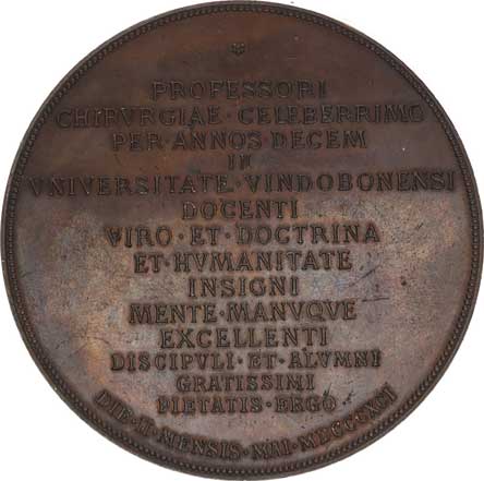 prsí zprava a opis / 14-ti řádkový latinský nápis, opis sign.: A.SCHARFF patin. bronz 62,5 mm 103,45 g "R" |
