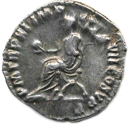 | 215. | Denár, sedící Concordia drží obětní misku a druhou ruku opírá o t
