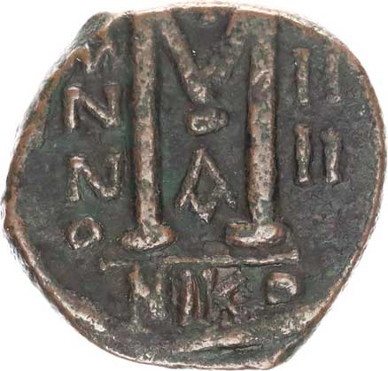 | 373. | 1/2 Follis (23 mm), A: Poprsí v helmici drží žezlo / X X / CON .