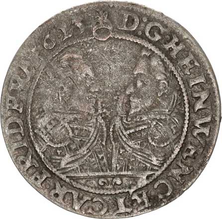 Dvojportrét zprava / Dva korunované erby var.: s kyticí, rozděl ená datace 16 - 96 Pol. 121; Dav.7701 29,166 g |