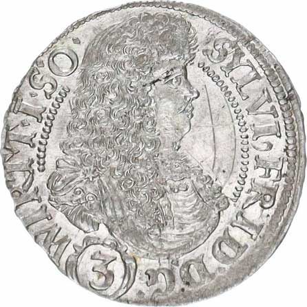 | 501. | 3 kr. 1670 CB, Volava Sa -, opis: .CHRISTIANVS.(3).D.G.DVX.
