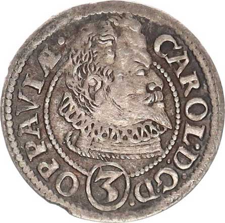 | 509. | 3 kr. 1615 BH, Hasse Sa 360/157 var.: CAROL.D:GD.()OPPAVIA