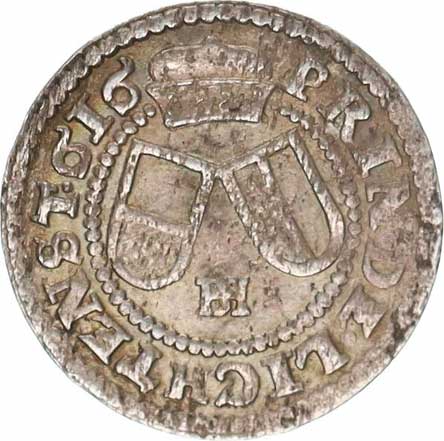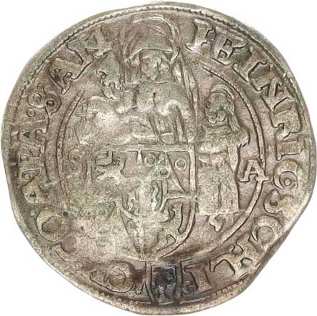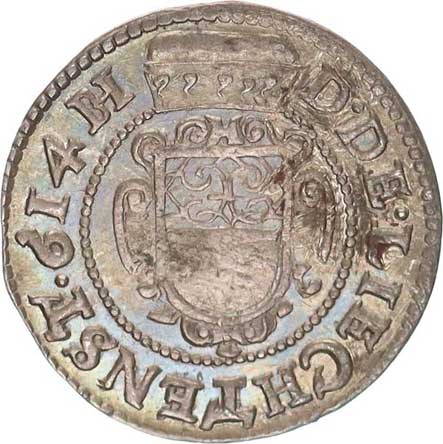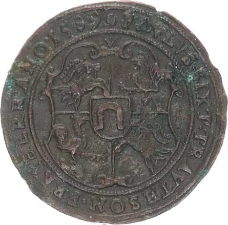 1589, znak rodu Trautsonu, opis / znak rodu Eytzing, opis Cu 3 0 mm 6,5 g Neum. 28890; Wi. 909; LG.II/1313 "R" mír. oxyd. |
