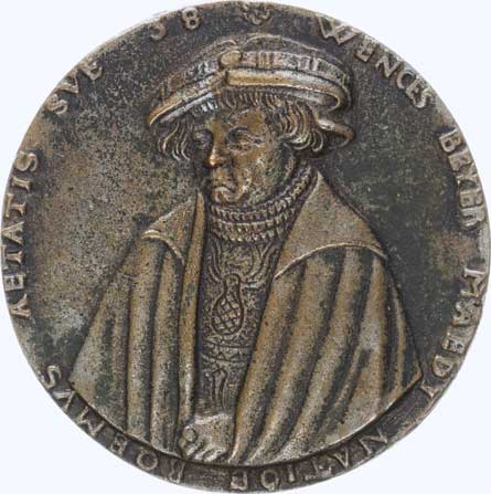 | 529. | Pamtní medaile z r. 1526, Av.: Postava do pasu mírně zleva, opis