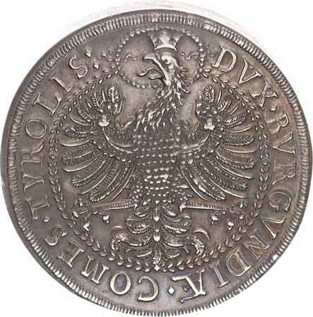 D:G:ARCHIDVX.AVSTRIAE. / DVX.BVRGVND: COMES.TYROLIS. loket, žezlo a poprsí přerušují perličkový kruh / ve spodní části koruny ornament 28,161 g |