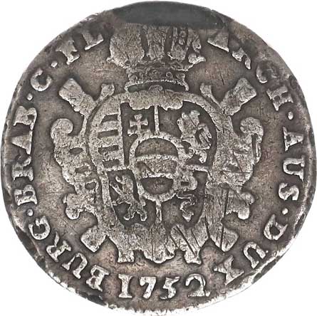 | 1104. | XVII kr. 1762 b.zn., Praha Hal. 1956 var.: D: G - . R. I. G