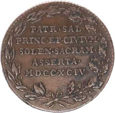| 1270. | Žeton na holdování v Belgii (Brusel) v roce 1794 bronz 22 mm