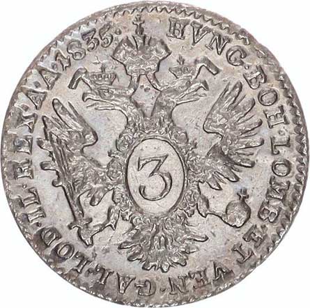 | 1504. | 3 kr. 1835 A - FERDINANDVS "R" vada stř. v Av. | -1/0- | 2000,- | --.- |