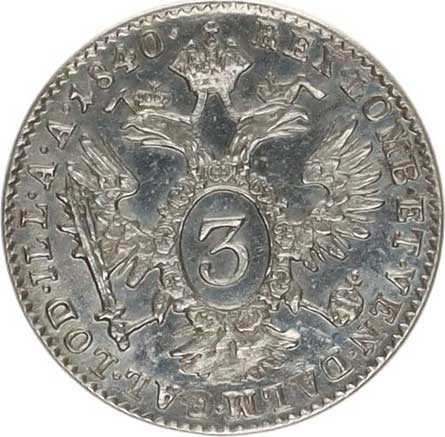 | 1512. | 3 kr. 1840 A "sbírkový stav" tém. | Proof | 1400,- | 1500,- |