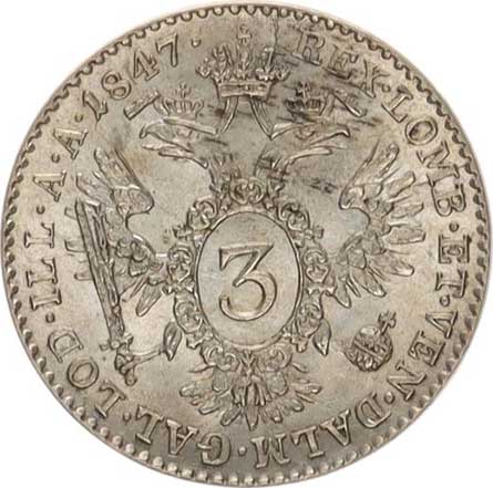 | 1524. | Három = 3 Krajczár 1849 NB dr. vada stř. | 1/1 | 1300,- | --.- |
