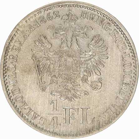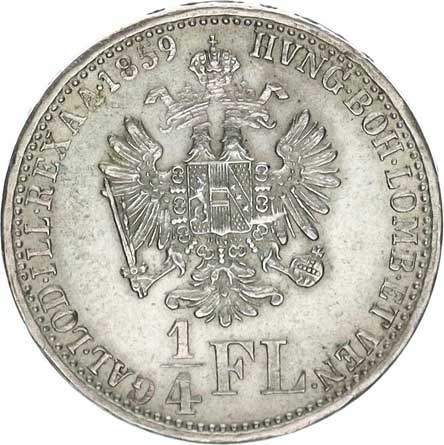 | 1902. | 1/4 Zlatník 1859 M - I. typ (menší značení nominálu) "RRR"