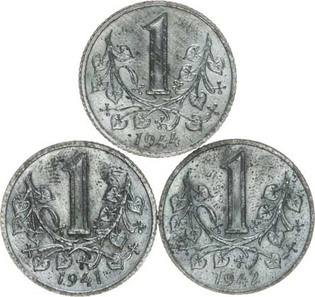 | 2580. | 1 Koruna 1941, 1942, 1944 3 ks | RL-1 | 500,- | --.- |