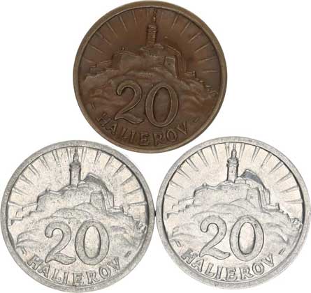 | 2582. | 1 Koruna 1942, 1944; +50 hal. 1941; +20 hal. 1941, 1942 5 ks | 1-2 | 200,- | --.- |