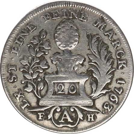 | 3204. | 20 Kreuzer 1763 F (A) H, s tit. Fr. Lotrinského Forst. 621;