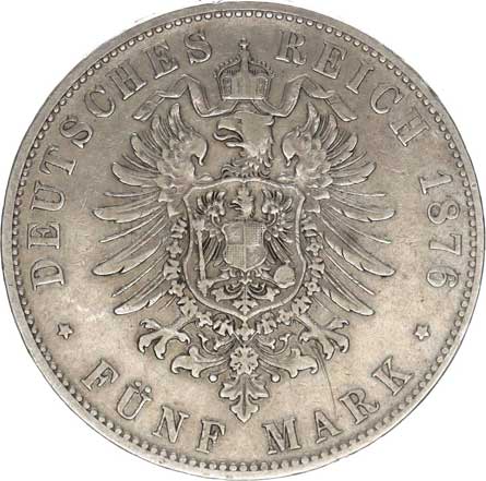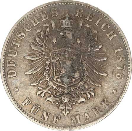 | 3233. | 5 Mark 1876 D KM 502 | +2/1- | 1200,- | --.- |