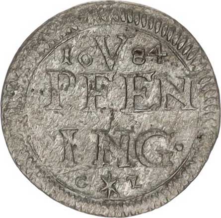| 3216. | V Pfening 1684 C*Z "R" KM 338,1 0,582 g | 1/1- | 1100,- | --.- |