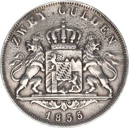 | 3230. | 2 Gulden 1855 - typ s erbem KM 446 21,057 g