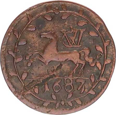 | 3241. | 1 Pfennig 1687 - I. typ, s ornamenty a monogramem nad koněm