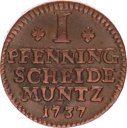 | 3247. | 1 Pfennig 1737 IAB - opis MUNTZ KM 215.3 "R" | 1/1 | 250,- | 400,- |