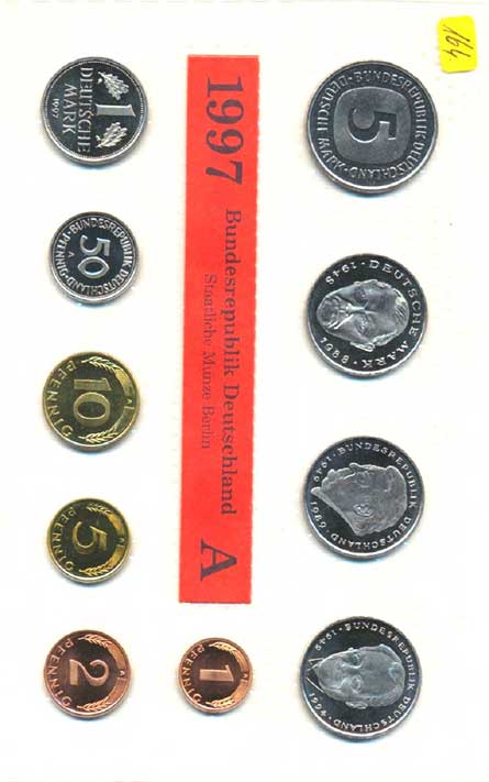 | 3655. | Ročníková sada mincí 1997 minc. A (1, 2, 5, 10, 50 Pf., 1, 5,