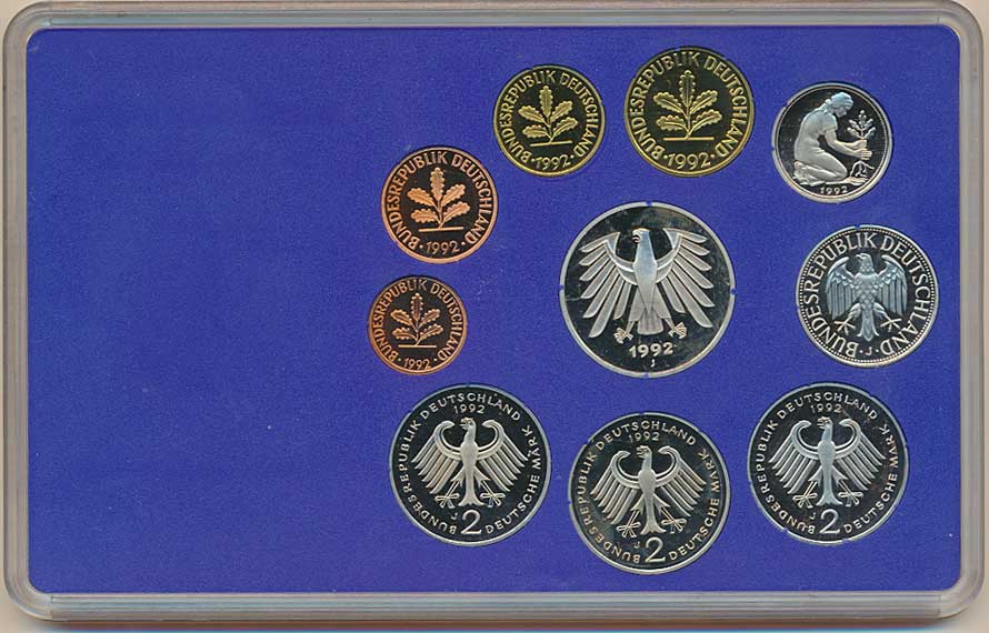 | 3665. | Ročníková sada mincí 1992 minc. J (1, 2, 5, 10, 50 Pf., 1, 5,