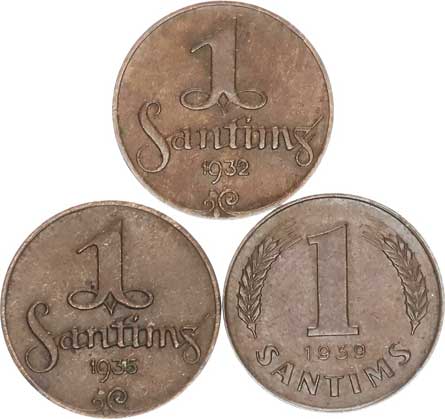 | 3909. | 1 Santims 1924, 1928 (hr.); +2 Santimi 1922 3 ks | 1-2 | 110,- | --.- |