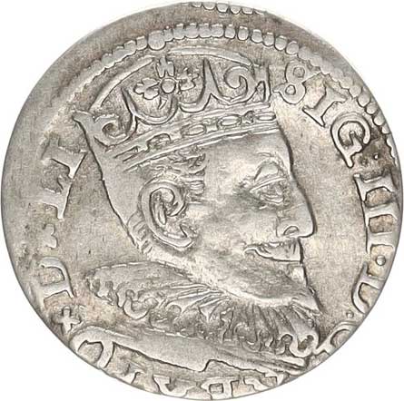 | 4075. | III groš 1597 Riga, Wulf - var.: poprsí přerušuje opis mezi D - +