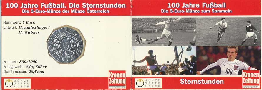 | 4287. | 5 Euro 2004 - 100. výročí rakous. fotbalu, míč v síti KM 3113