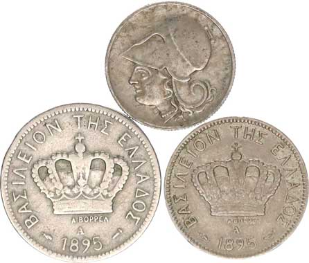 | 4373. | 10 Lepta 1895 A; +20 Lepta 1895 A, 1926 "R" KM 57, 59, 6