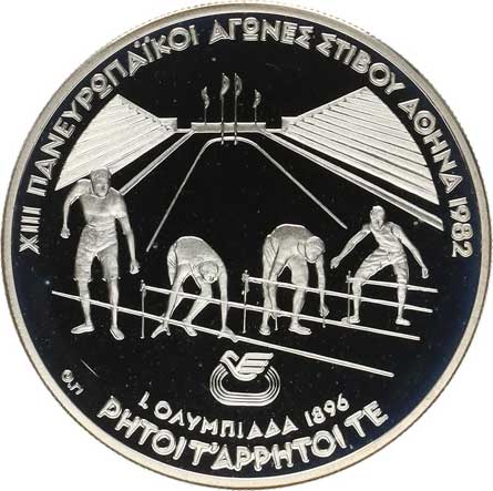 | 4383. | 100 Drachmes 1982 - XIII. panevropské hry, skok o tyči KM 136