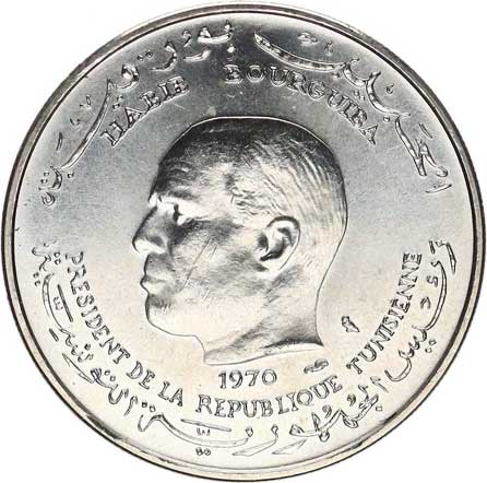 | 4644. | 1 Dinar 1970 - F.A.O. / President Habib Bourguiba KM 302