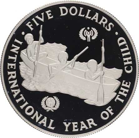 | 4674. | 5 Dollars 1983 - Mezinárodní rok dítěte, tři děti ve člunu KM