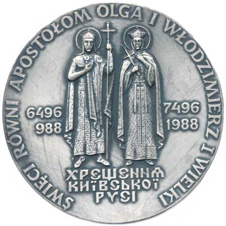 ila a Metoděje / kníže Sv.Vladimír I. a Olga, polské opisy sign. : S.Watróbska postř. bronz 70 mm 124 g Burian 204 |