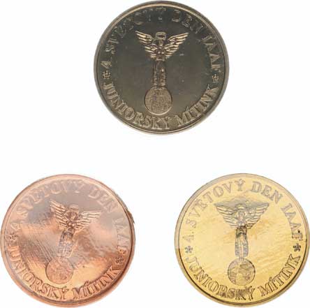 globu / XXXVIII. ročník Velké ceny Olomouce 8.5. 1999, městský zn ak bronz +Cu +mosaz 30 mm (vydáno á 50 ks) PMP I/610 a, b , c 3 ks |