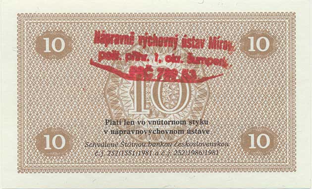 | 5497. | 10 Korún 1981 - ústavná poukážka , razítko: Nápravně výchovný úst