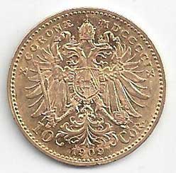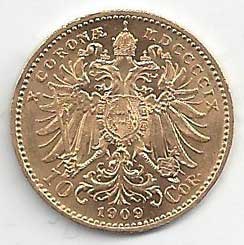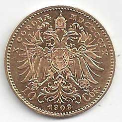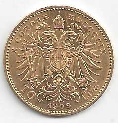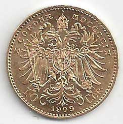 | 39. | 10 Korun 1909 bz, Marschall | 1/0 | 4000,- | 4200,- |